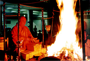 とにかく行をしている。山行、水行、四国八十八ヶ所つなぎ歩き遍路、供養、護摩行……。行で最期を迎えたいと思っています。 |